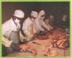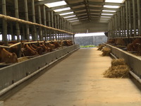 公司直屬優(yōu)質肉牛育肥場,位于平度市田莊鎮宮東村南1公里處,始建于2009年3月,設計存欄3000頭,現存欄1000余頭,占地100多畝,現有建筑面,18600平方米。公司擁有一批具有養(yǎng)牛經驗的管理、技術、飼養(yǎng)人員。聘請了全國養(yǎng)牛方面的知名專家作為技術顧問。養(yǎng)牛場現有職工23人,具有初、中級以上技術等級和從事養(yǎng)牛5年以上的工人占70%以上,有管理和技術人員5人,其中畜牧獸醫(yī)專業(yè)中、高級以上職稱3人。本公司通過食品安全認證、質量體系、無公害認證,是國家地理標志保護產品。是肉牛定點屠宰單位。被評為“島城市民最喜愛的農產品品牌”、第一批“平度好食材”。本公司肉牛養(yǎng)殖場喂牛所用飼料全部采用自己配制的飼料,主要使用大豆、玉米、麩皮,大豆經炒料機炒熟后再分碎飼喂,無任何添加劑。公司有火鍋料理店6處,安排從業(yè)人員80多人。公司擁有年屠宰加工1萬頭肉牛的屠宰生產線,嚴格執(zhí)行國家GB/T17238-2008鮮凍牛肉分割標準,并按伊斯蘭清真屠宰要求進行屠宰分割以及排酸嫩化處理。我公司生產的牛柳、西冷、肉眼、上腦、S腹肉等產品主要銷往上海,北京,南京,濟南,青島,煙臺等大中城市的四、五星級酒店,用作西餐、韓餐、日餐、中餐等深受用戶青睞。